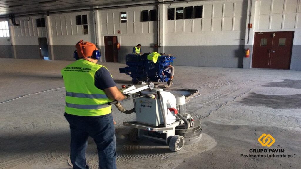 Pavimentos para naves industriales aplicados por Grupo Pavin ( Estamos viendo el dinaovado de un pavimento de hormigón )