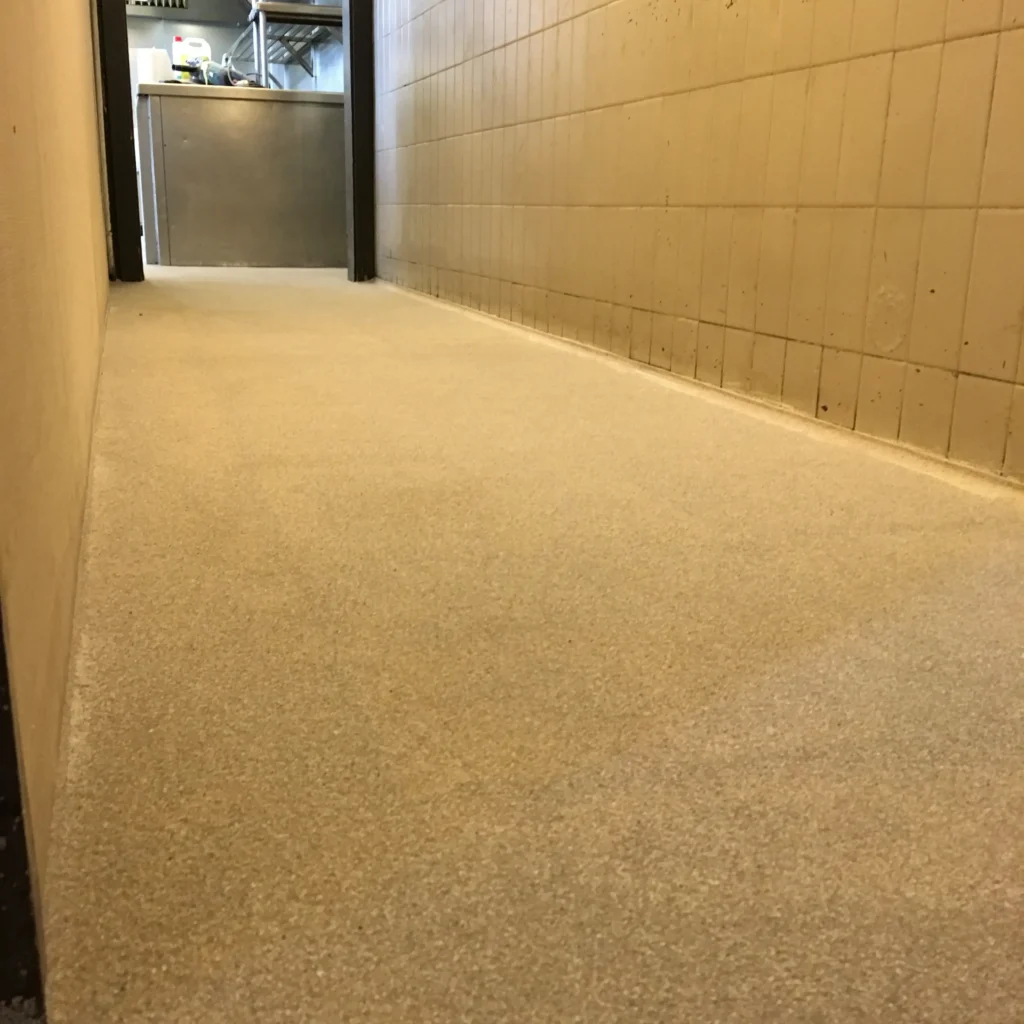 Suelen ser suelos de resina de rápida puesta en servicio al 100% en 2-3 horas tras terminar su ejecución. Este tipo de pavimentos industriales para la hostelería son muy apropiados para su aplicación en áreas donde se requiera gran resistencia mecánica y química, con altas propiedades antideslizantes. El espesor es de 5-6 mm.